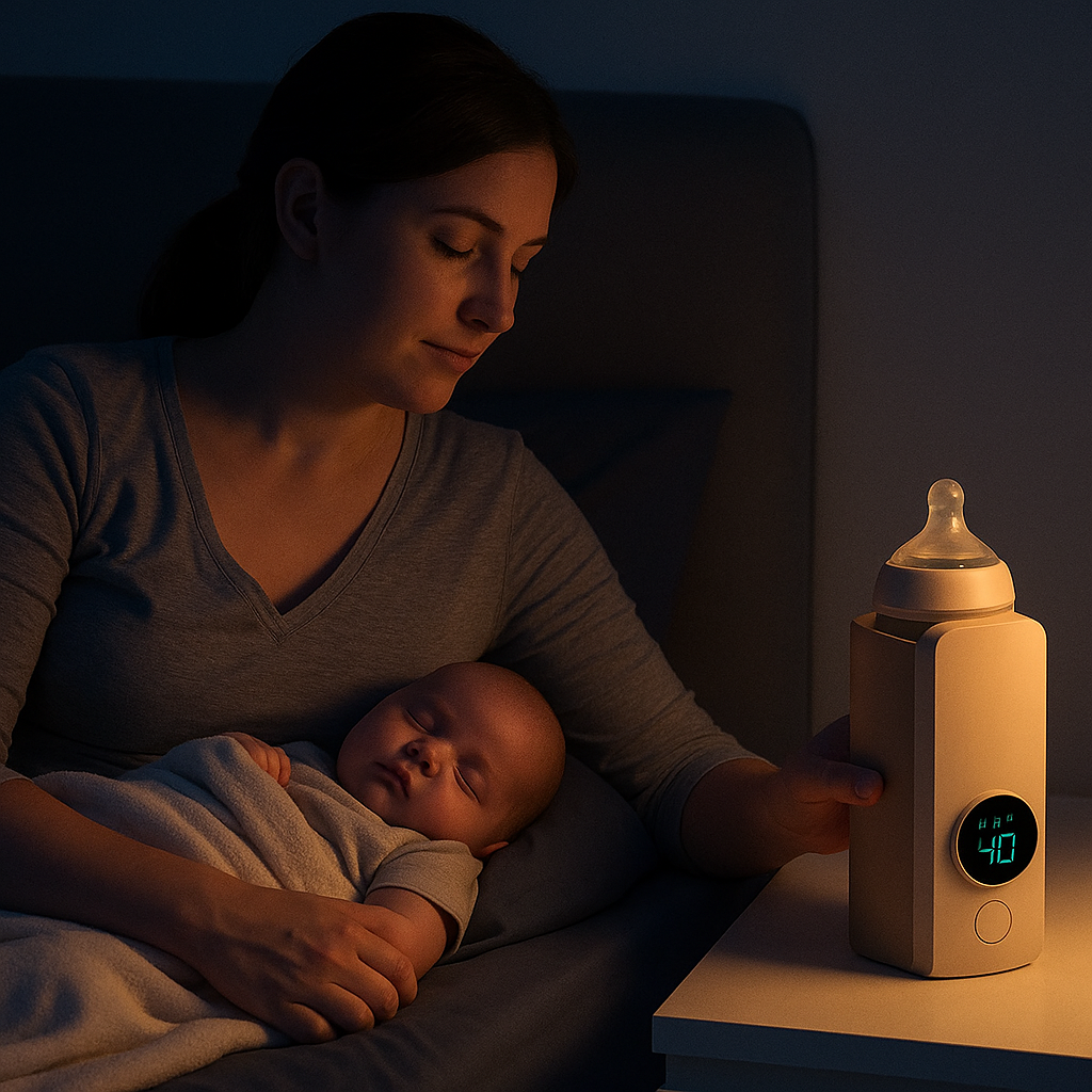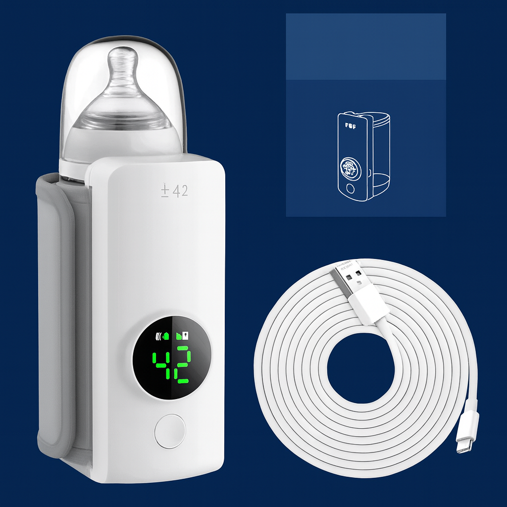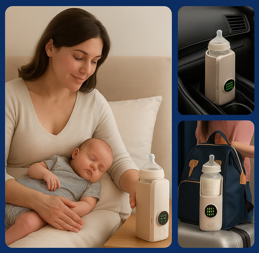 Este calentador te acompaña donde sea: dormitorio, auto, casa de los abuelos o viajes. Su diseño compacto y liviano te da libertad total para preparar la mamadera en segundos, sin depender de hervidores ni microondas.